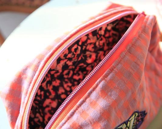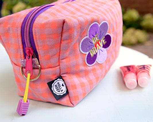 Toilettas/Etui - Seersucker lila-oranje Lucky